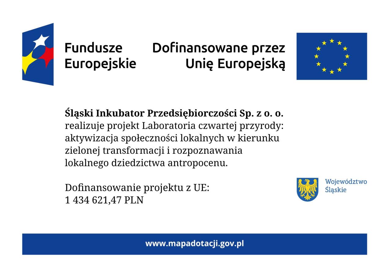 „Wydarzenie/zadanie realizowane w ramach projektu „Laboratoria czwartej przyrody: aktywizacja społeczności lokalnej w kierunku zielonej transformacji i rozpoznawania lokalnego dziedzictwa antropocenu”.